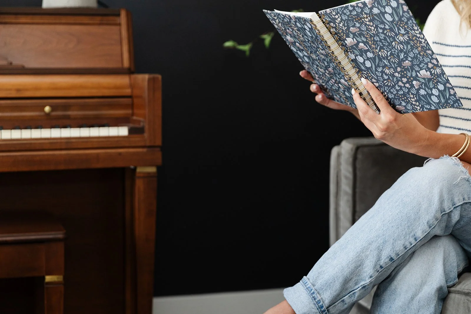 Brainstorm in your planner or notebook skills or hobbies you’ve wanted to explore. Maybe you’ve wanted to try pottery or to take piano lessons. Maybe you’d like to try knitting, quilting, or embroidery. If those skills sound too tough right now, maybe it’s as simple as sitting down with a stack of paper and art supplies, a block of air dry clay, or bending the analog rules and making a playlist for a friend on your computer. If you are lucky to have a record player, put an album on and listen the whole way through. Light a favorite scented candle or stick of incense. If you have a typewriter, get it set up and type some sentences. Pull out some favorite stationery and envelopes and write a letter to a childhood friend. Put together a surprise package for a friend with a few small favorite things. Collect items throughout the month and try your hand at collaging or junk journaling in your Golden Coil notebook. And if the chance arises, attend a local performance. See a play, musical, concert, or show. Keep your phone put away and soak up the experience. Reacquaint yourself with the experience of doing things with zero proof to show you did them. Make it your goal to live in the moment and be an active listener.